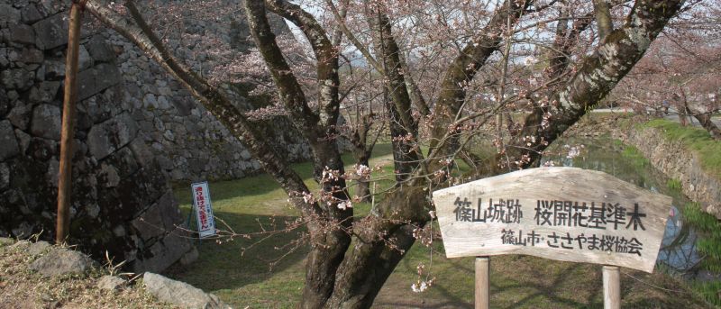 篠山城跡の桜は、全国桜名所150選にも数えられており、その開花は市民にとって待ち遠しくもあり、一大関心事でもあります。3月末の送別に際しては「お城の桜もつぼみをふくらませ・・・」、入学の頃になると「お城の桜も今満開となり・・・」というのが定番でしたが、最近はどうも当てはまらないことが多くなりました。温暖化により春の訪れが目に見えて早くなっています。