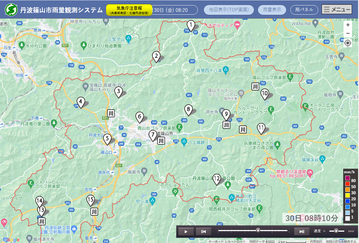 丹波篠山市雨量観測システム